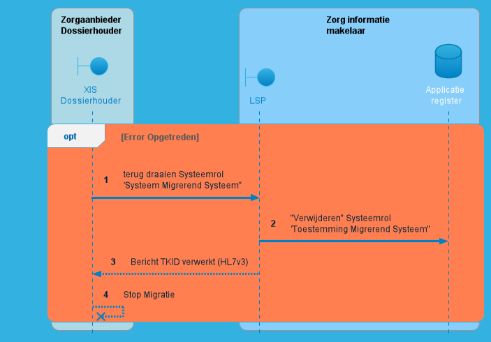 Als er een fout wordt geconstateerd, dan wordt dat door het LSP aan de XIS gestuurd. De XIS moet deze opvangen en verwerken nadat de laatste patient is aangemeld of het proces is afgebroken met een ZIMMIGABO error code.
